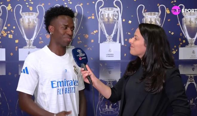 北京时间4月8日,皇马将在欧冠1/4决赛首回合主场对阵拜仁,皇马前锋维尼修斯赛前接受了TNT体育巴西频道的采访。